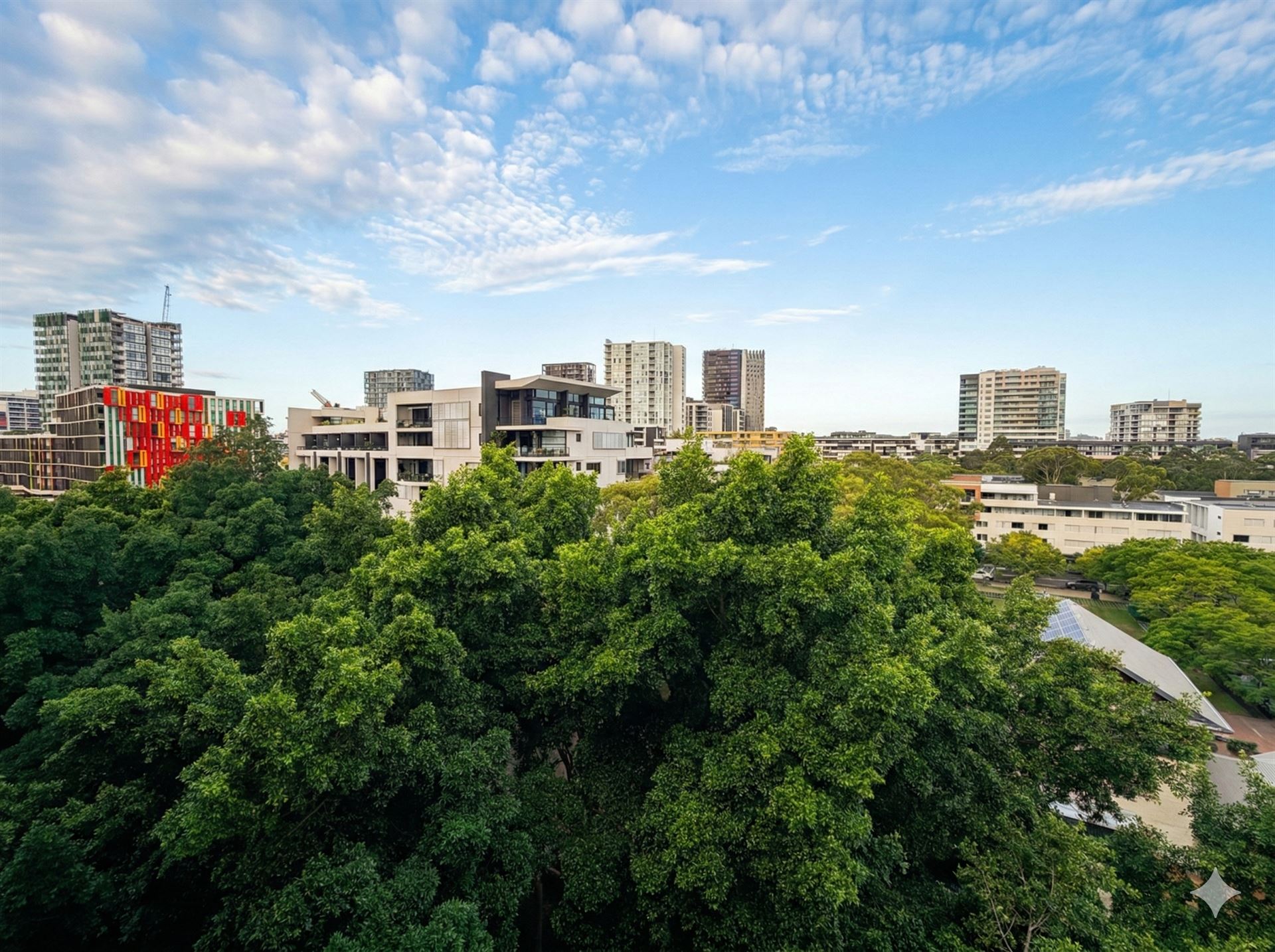 Beautiful greeneries & Lifestyle Convenience in Zetland. What you see are actual views from balcony. Total 72sqm on title, 59sqm for size of apartment.